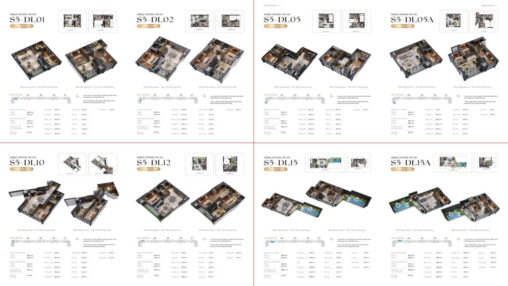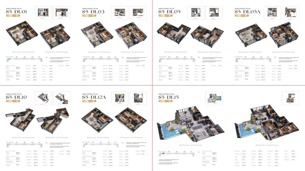 | Duplex | 4 phòng ngủ | 192 – 284m2 | 36.9 – 75.9 tỷ |