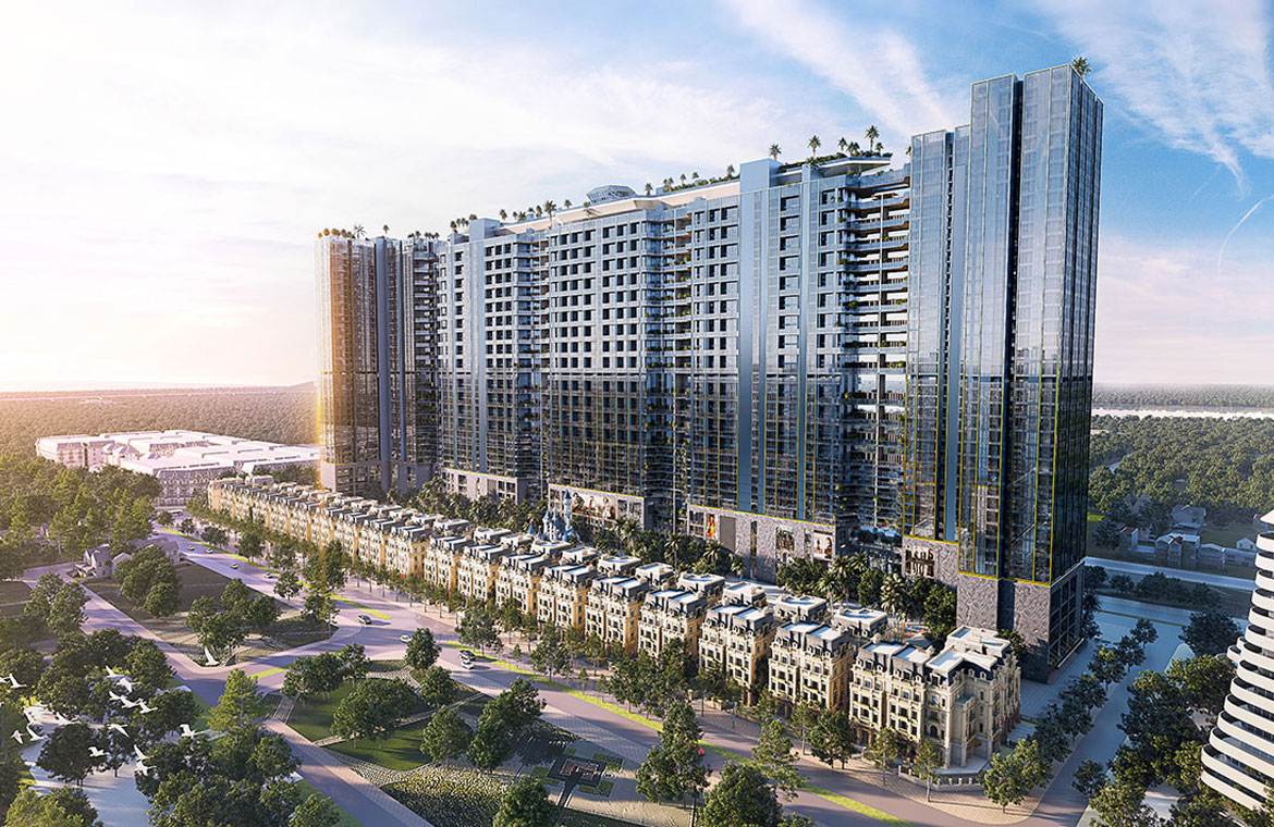 - Quy mô: 50.850 m2. Gồm hơn 50 căn shophouse, 60 căn biệt thự, 5 tòa chung cư cao 40 tầng và 3 tầng hầm.