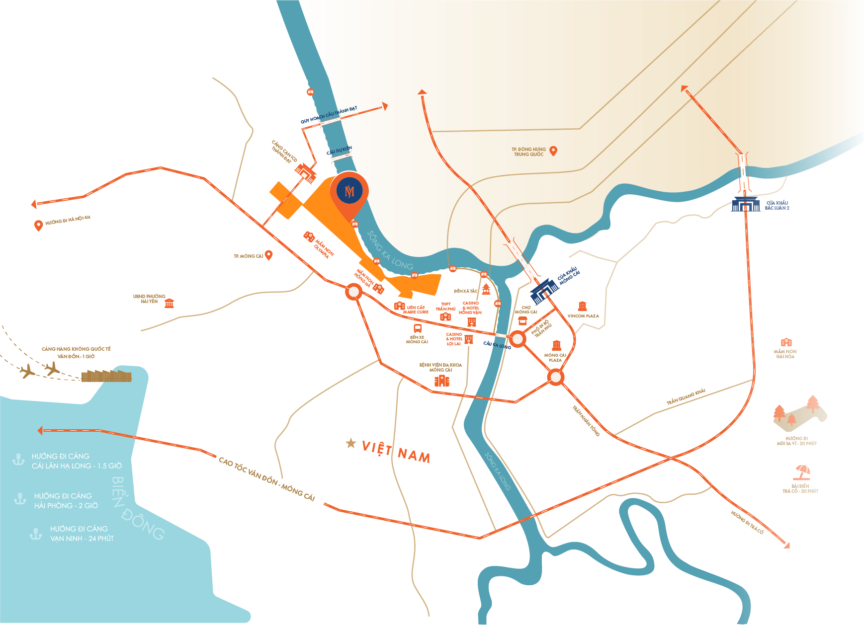 Từ dự án chỉ cách quốc lộ 18 – con đường huyết mạch nối liền cao tốc Móng Cái – Hạ Long khoảng 500m, lại nằm ngay cạnh cảng cạn ICD Thành Đạt, cách cửa khẩu quốc tế Móng Cái khoảng 2,5km và cách cầu Bắc Luân 6km, SGO Marina Móng Cái mở ra một cuộc sống thuận tiện ngay tại trung tâm thành phố cùng tiềm năng đầu tư sinh lời không giới hạn trong tương lai.