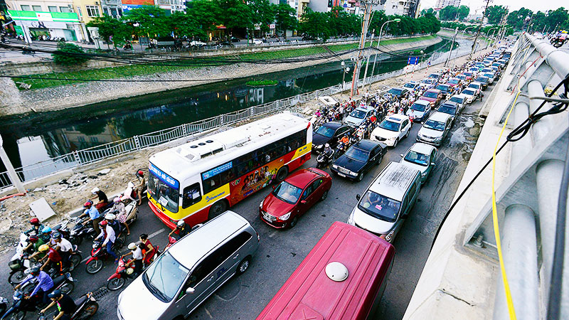 Ngột ngạt, ùn tắc kéo dài, đó đã trở thành câu chuyện thường ngày đối với người dân thủ đô Hà Nội. Có những đoạn đường chỉ dài khoảng 1 – 2 km, nhưng có tới hàng chục tòa chung cư nằm dọc 2 bên, lúc nào cũng kẹt cứng người qua lại, những hôm cao điểm phải mất tới cả tiếng đồng hồ mới đi qua được.